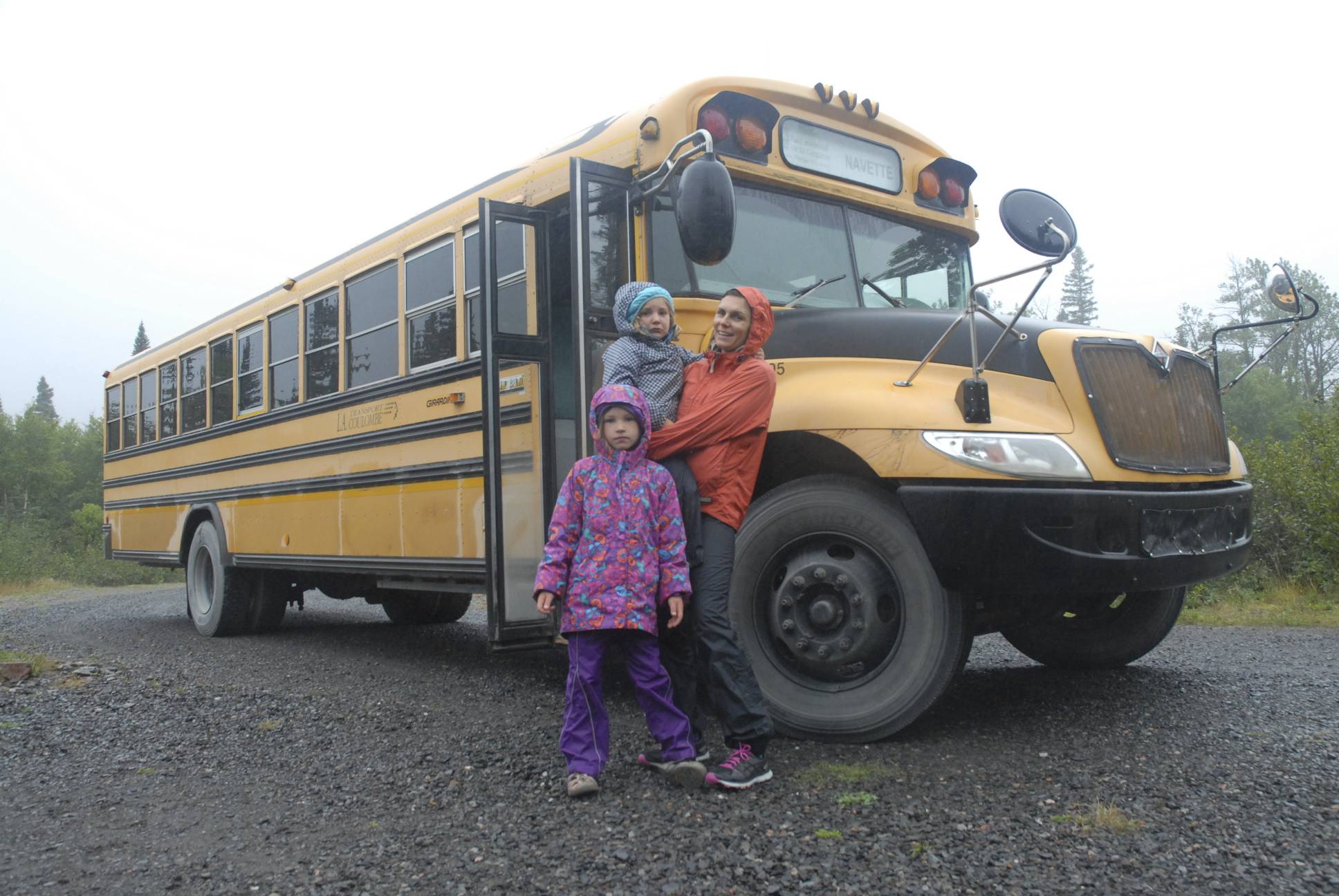 We had to pry Sylvie out of the kiosk as she had become incredibly attached to a stuffed caribou (her weakness, and a painful one as it inevitably involves tears and recriminations) but the bus ride itself was novel for the girls and by the time we got off everyone’s cheer was restored.