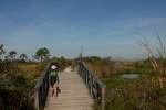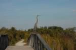 Later in the day we walked out on the path through the brackish salt marsh that ran between the Bay and the Gulf. A small bridge over a deeper section of the marsh had an enormous heron parked on it, and Leonie crept up on it until she couldn’t have been more than ten feet away before it finally decided to acknowledge the threat of her and fly on.