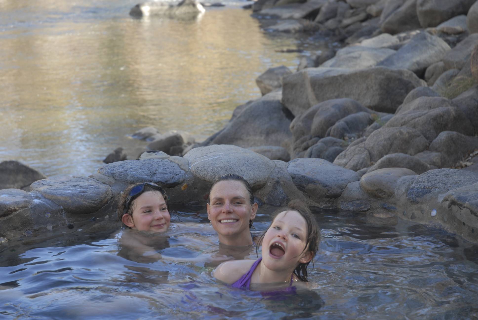 The girls, reunited with their friends Lilligoose and the O-Dog, played nonstop while myself, The Hippo, Val, Clarissa and Christian either huddled in the hot springs, or huddled around a roaring campfire, or huddled around a bottle of brown water.