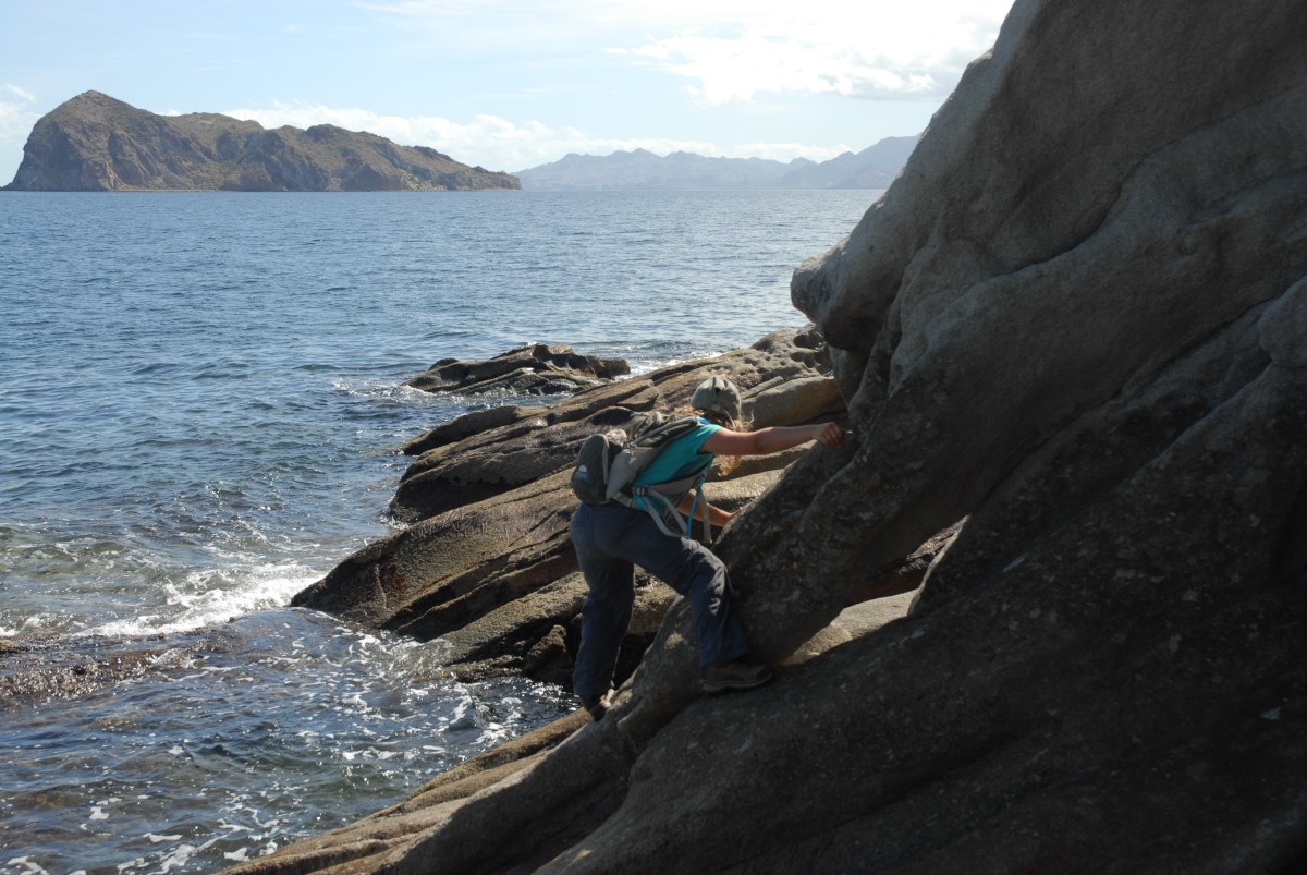 DSC_0118 February 9, 2014 by 172robbie We overshot a little, and had to hustle to beat the tide back to camp. Sylvie seen here doing a little bouldering.