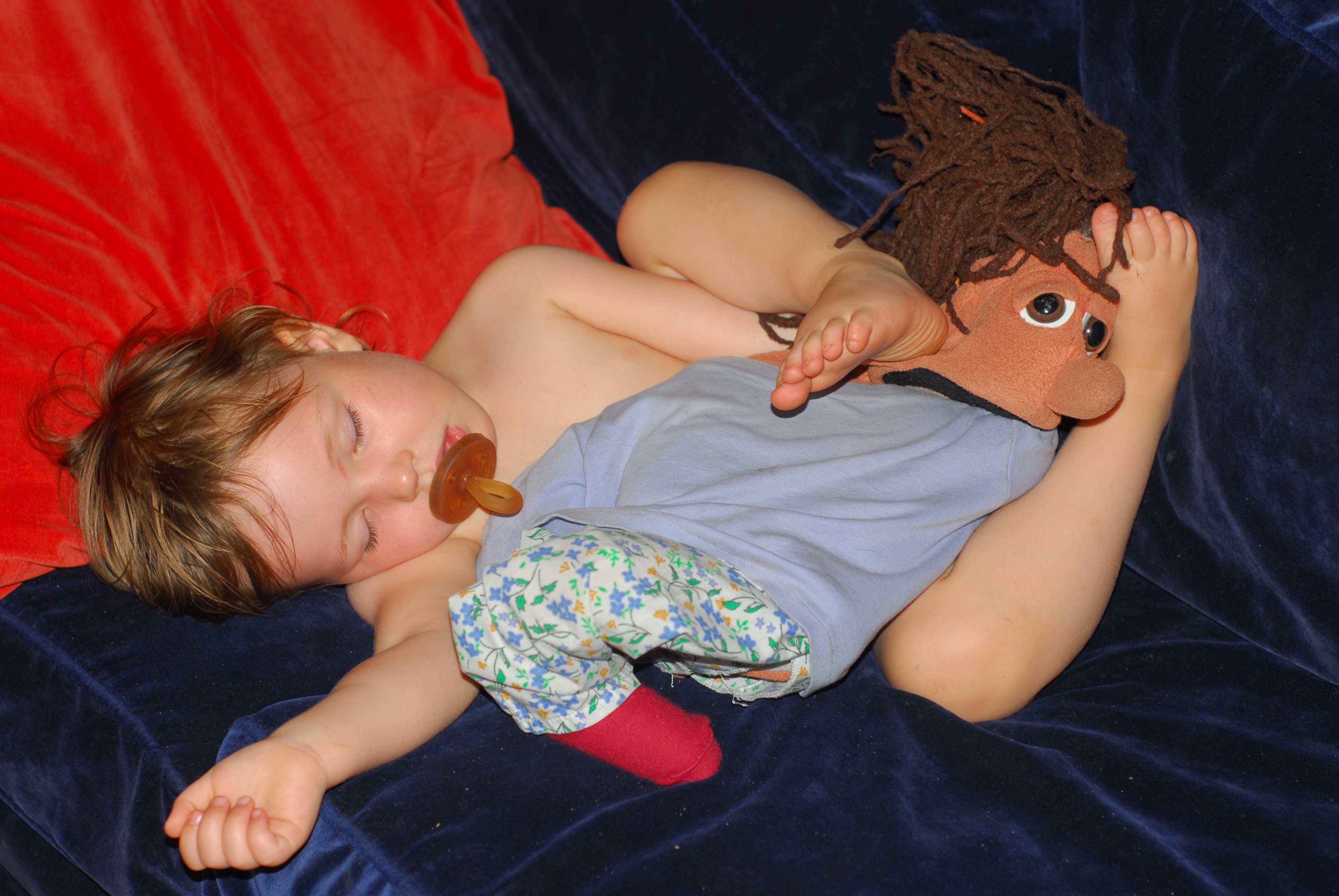 We didn’t, of course, and we ended up having a woman in Vancouver, who made muppets for a living, reproduce Lulu from photos, and we christened the doll “NewLu”, and I will say that for her part, Leonie kept herself together during this whole frantic period (which lasted a couple months) much better than we did.