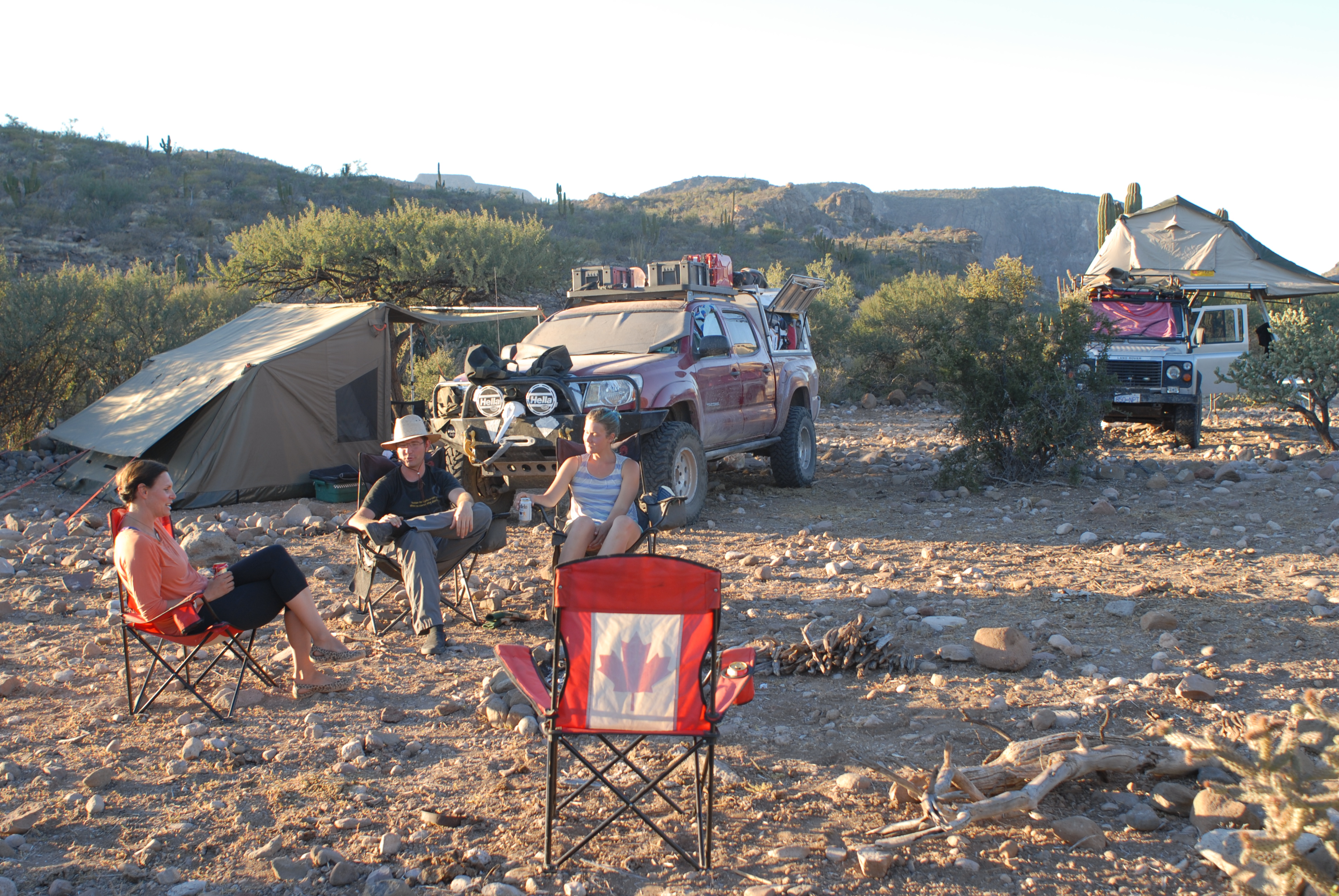 After a couple days we left the high mesa campsite and worked our way east through the mountains to San Evaristo, which was as remarkable a drive as advertised – for the most part, we felt as though we were winding our way through our own private version of the grand canyon – and found ourselves spit out, after some nail-biting climbs and switchbacks and shelf roads onto the shores of the Sea of Cortez, and another hour or so later were camped on an unmanned beach, just us, floating in the water and allowing the accumulated dust and the grime of the mountains wash away.