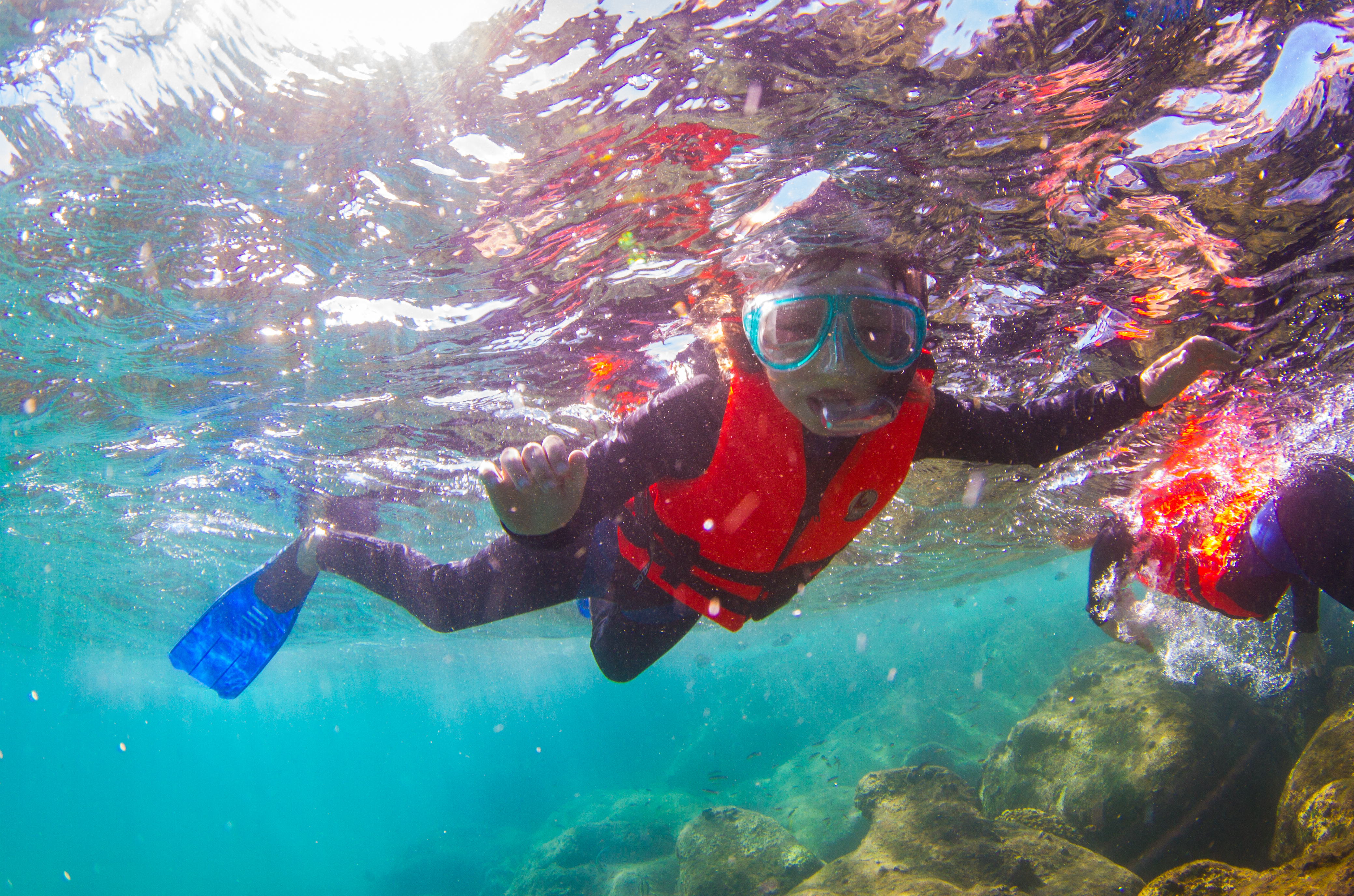 Claudio kept an eye on them without being obtrusive, edging in to escort them away from rocks, or to reign them in if they started off too far away from the group.  We spent half an hour or so lazily floating about – between the saltwater, the wetsuit, and the life jacket required by the park, we were all bobbing about like corks – it was back into the boat to go visit the sea lions.