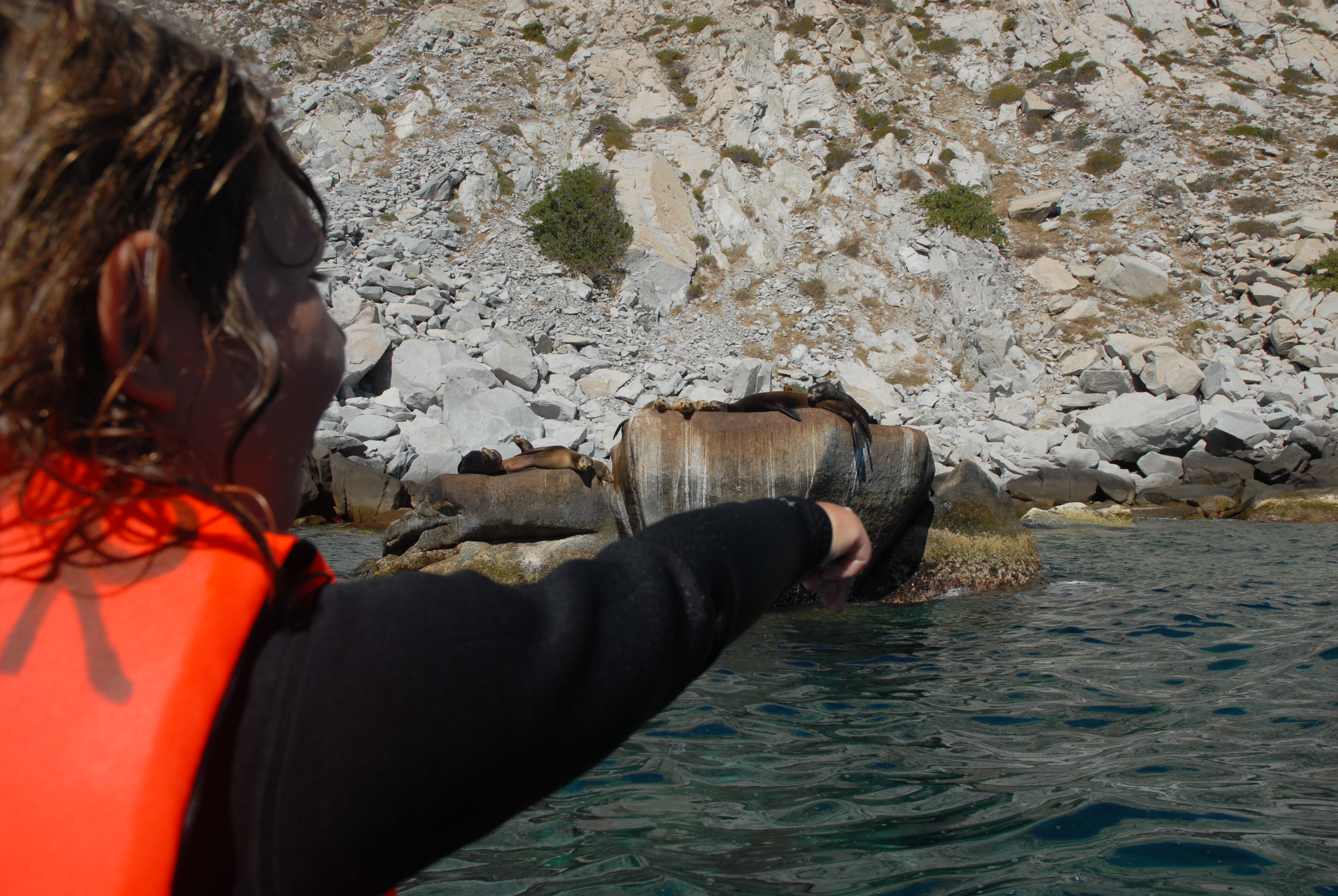 The girls were stunned into silence, quite literally the first time that has ever happened, as the sea lions swam, twisting and writhing with extraordinary agility around the rocks and around us, dark and curious eyes on us, and then retreated into the blue depths just beyond our visibility.