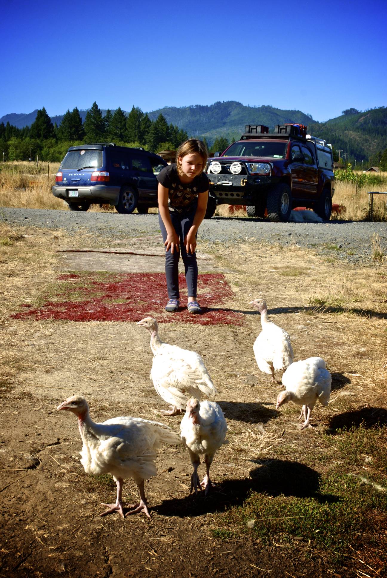 The girls have been thriving. They wake in the morning and make their rounds, saying hello to the dogs, and then the chickens (checking to see if any eggs are waiting for them in the coop), and the turkey chicks, and then they will harvest greens to take to the rabbits, and finally they’ll enjoy breakfast before running back outside.