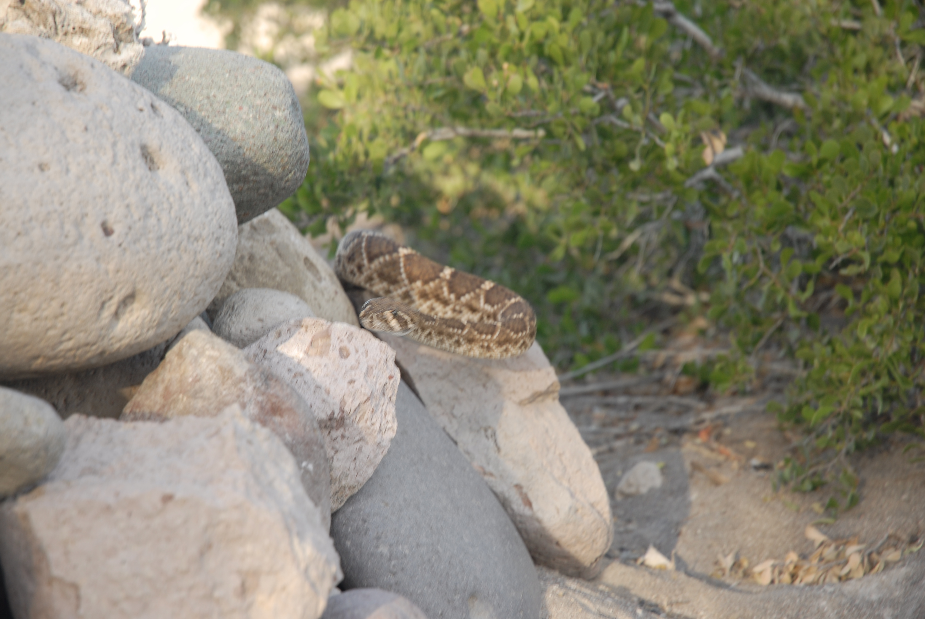 DSC_0267 February 25, 2014 by 172robbie That is, unless a four foot long rattlesnake pops out of the rocks in your fire pit. Yes, the picture is blurry. But to be fair, a rattlesnake is headed right at my face.